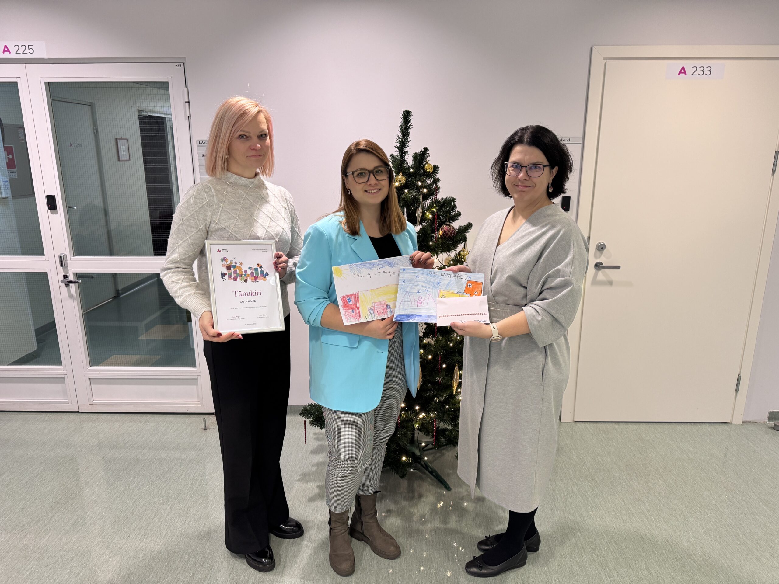 Lasteaia juhataja Diana Liiber ja õppejuht Kristi Tarassov tulid lastehaiglasse külla, et toetus isiklikult üle anda. Lapsed olid joonistanud oma lasteaiast ka vahvad pildid. Suur tänu, et soovite aidata haiglas olevaid lapsi ning näitate eeskuju – nii sirguvad hoolivad ja abivalmis tulevikutegijad!